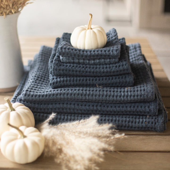Beautiful Modern waffle bath towels are the solution when you want a stylish, yet practical towel. Soft, pure Natural Cotton is woven to form big honeycombs after washing and drying, making them super absorbent and quick-drying (up to 40% faster than regular towels).