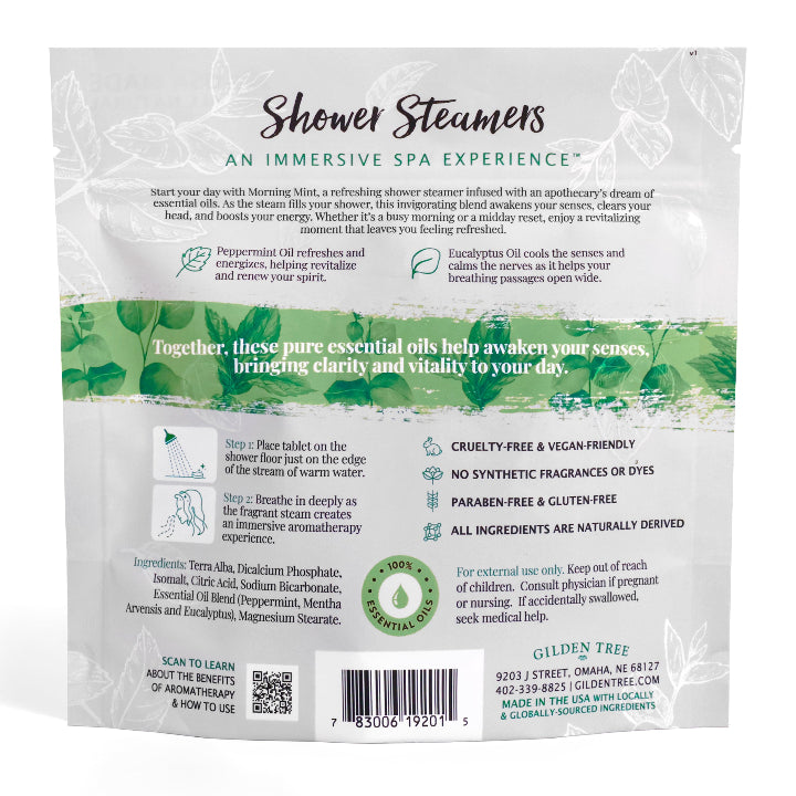 Start your day refreshed with our Morning Mint (Peppermint + Eucalyptus) Shower Steamers — a revitalizing spa experience right in your shower.